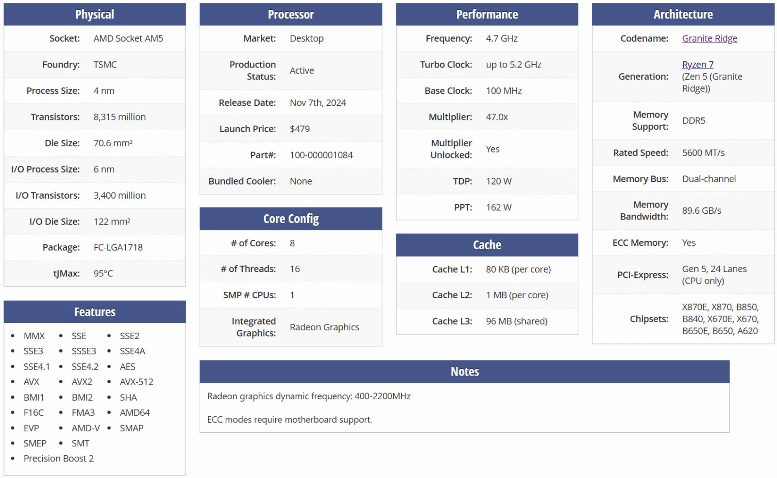 AMD Ryzen 7 9800X3D CPU AM5 Zen 4 Boxed