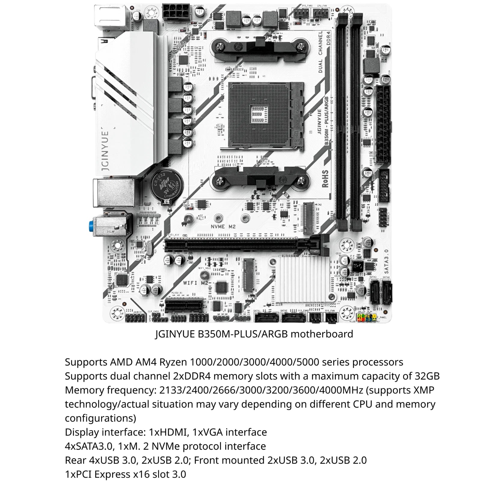 JGINYUE B350M PLUS ARGB Motherboard AMD Ryzen AM4 Socket DDR4